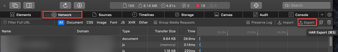 - Once you have reproduced the issue, right-click on any network request, select Save all as HAR with content, and save the file to your computer.