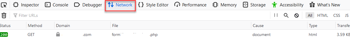 - From the Firefox menu (three horizontal lines), select Web Developer > Network.