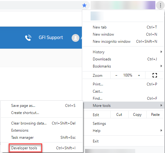 - From the Chrome settings menu, select More Tools > Developer Tools, or press F12.